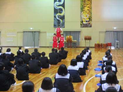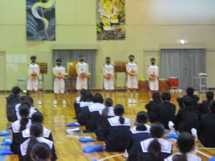 新入生歓迎会での部活動紹介(3) 公開日 2022/04/21 更新日 2022/04/21 学校行事 新入生歓迎会の後半で、部活動 の紹介がありました。 写真の 上 女子卓球 中 男子バスケ 下 女子バスケ です。