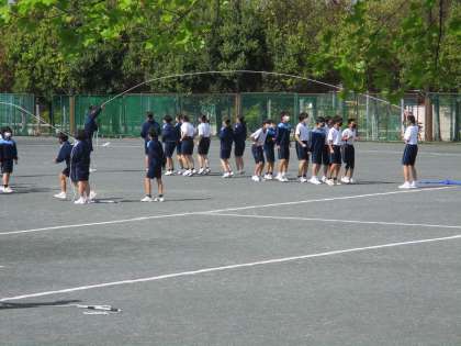 2年生の保健体育科の様子です。 公開日 2022/04/22 更新日 2022/04/22 教育活動の様子 2年生が体育で大縄&8の字跳びを 練習しています。 それぞれチームに分かれて全員跳び と8の字跳びの練習です。 体育祭での種目にもなるので、跳び方 の工夫などして多く飛べるように鍛えて いきましょう。