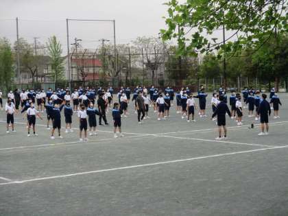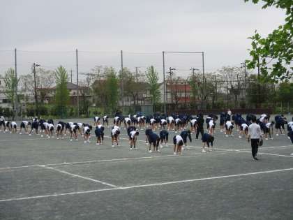 体育の授業の初めにラジオ体操をしています。
