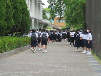 朝、曇り空での登校でした。
