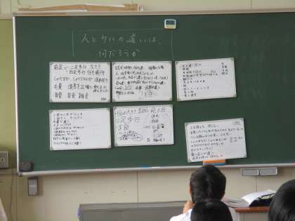 グループでの考えを出し合って、学級