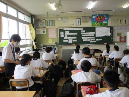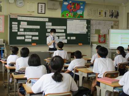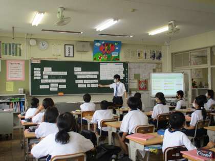 教育実習生の研究授業の様子です。(3) 公開日 2022/06/13 更新日 2022/06/13 教育活動の様子 5時間目、1年生の英語科の授業です。 放課後の校内の設定で、場所や時を尋ね たり、答えたりする会話を学習していき ます。 When Where の疑問文、そして その答え方を練習していました。