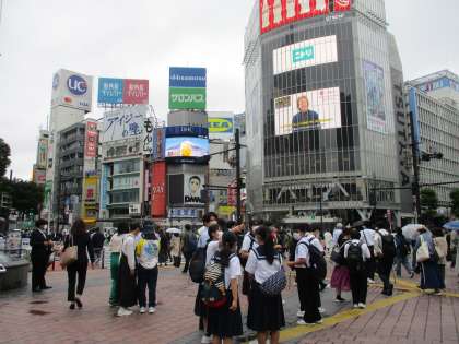 修学旅行 渋谷 これがあのスクランブル交差点 公開日 2022/06/20 更新日 2022/06/20 学校行事 渋谷の散策が始まったのが、9時過ぎて少し。 会社員や学生の通勤・通学の人がいっぱいでした。 あの渋谷のスクランブル交差点も、人人人。 でも、ぶつからない。すごいです。