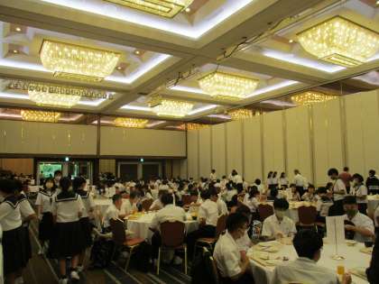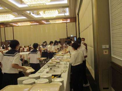 修学旅行 3日目の朝 バイキングの食事です。 公開日 2022/06/20 更新日 2022/06/20 学校行事 2日目の朝と場所が変わって、学年一緒に 食べます。愛知に帰るので、荷物も全部整頓 して持って部屋を出てきました。