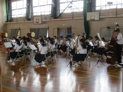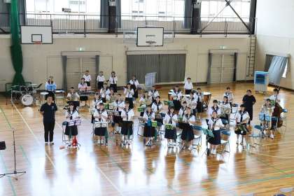 7月9日校内演奏会を開きました。(3) 公開日 2022/07/11 更新日 2022/07/11 教育活動の様子 7月9日に和太鼓部と吹奏楽部と合同で 校内演奏会を開催しました。 吹奏楽部の写真を紹介します。 最後の写真は、演奏会後の記念撮影です。
