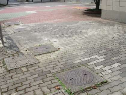 体育館前が、往来できるようになりました。