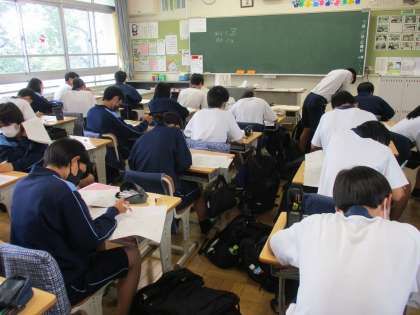 3年生、昨日のテストを振り返っていました。