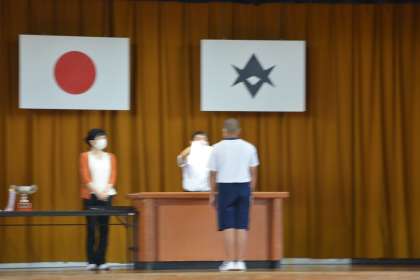 7月20日、全校集会(1・2年生はオンライン)