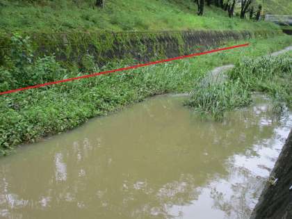 この赤い線あたりまで水量があったことを思わせます。
