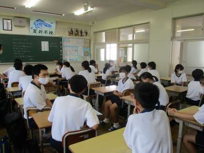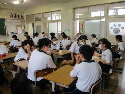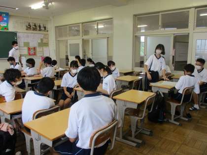 朝の会の初めに班会議をしています。 公開日 2022/09/01 更新日 2022/09/01 教育活動の様子 班会議で、一日の目標や予定を確認 しています。班での話し合いが全部の班 で終わると、さっと全体の朝の会が始まっ ていきます。 6週間ぶりでも、しっかりできますね。 写真は、1年生の教室の様子です。