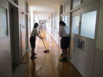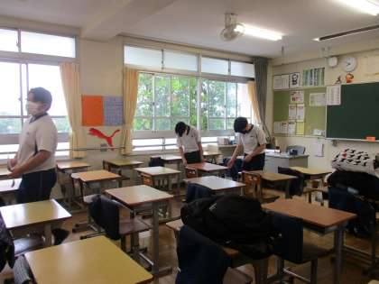9月2日朝のボランティア清掃の様子です。 公開日 2022/09/05 更新日 2022/09/05 教育活動の様子 9月2日のテスト前に、清掃の時間も学習に あてたいと、生徒会役員の意見で実行しました。 ただ、教室や廊下が汚れたままになってしまい ます。そこで、ボランティアで清掃をしています。 きれいな状態で、学習に専念できる環境づくりを 自主的につくっている子どもたちです。