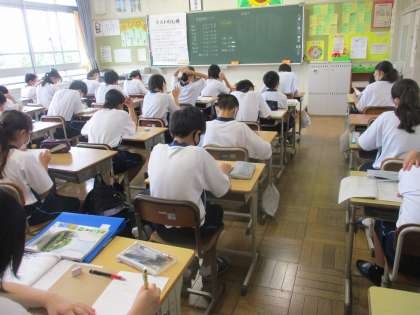 この写真は、1年生の朝の時間です。この後ある