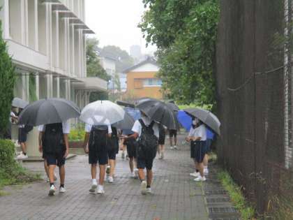雨の朝も、挨拶運動でさわやかに。