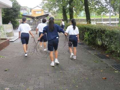 台風が過ぎ去った朝のボランティア