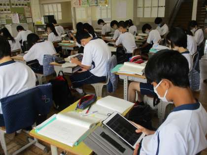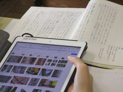 かなとなり、学習用タブレットを使って調べていました。