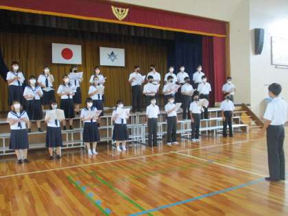 合唱練習の様子です。(2) 公開日 2022/10/04 更新日 2022/10/04 教育活動の様子 10月3日から特別日課で練習時間を 生み出して取り組んでいます。 音楽の授業で、アドバイスされたことを 思い返して、学級のリーダーが声をかけて 気付いたことを練習していきます。