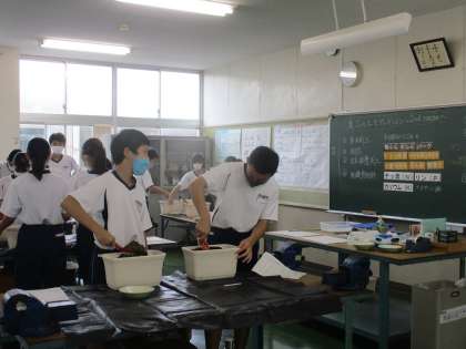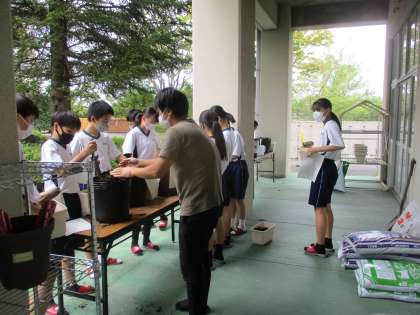 2年生 技術科の学習の様子です。(1) 公開日 2022/10/07 更新日 2022/10/07 教育活動の様子 2年生の技術科の学習では、ラディッシュを 栽培(2回目)しています。前回の経験を生か して、土づくりも改良をしています。 季節が違うので、生育の違いが比較できそう です。