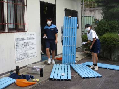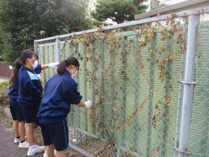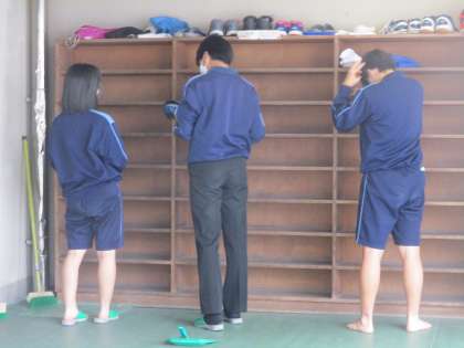 「WE LOVE いさと」活動の様子です。(8) 公開日 2022/10/28 更新日 2022/10/28 WE LOVE いさと 体育館前の下駄箱やプールの更衣室、 学校周りのフェンスもきれいにしました。