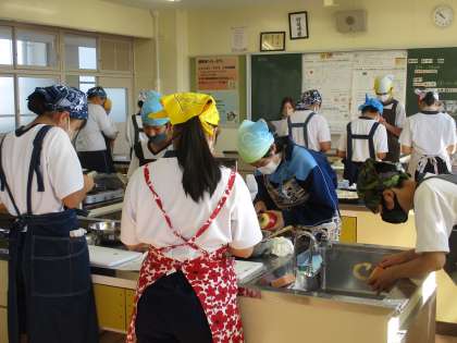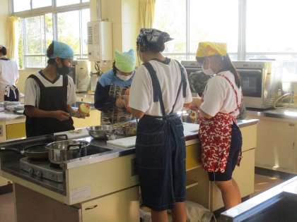 2年生 家庭科の学習の様子です。(1) 公開日 2022/11/09 更新日 2022/11/09 教育活動の様子 調理実習の第2弾です。 リンゴの皮むきをしています。リンゴを 使っての調理をします。 一人1個、自分の分のリンゴを皮むきします。