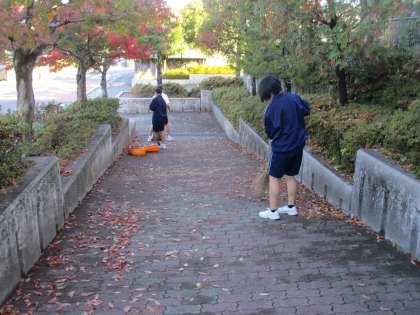 朝のボランティアで清掃をした場所も、落ち葉