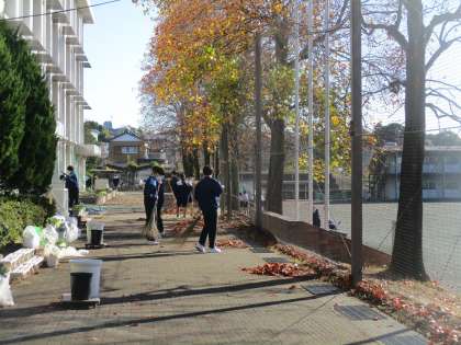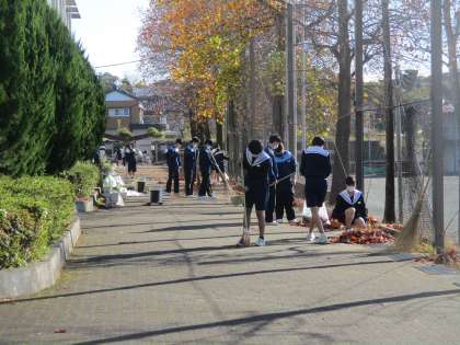 月曜日の朝、清掃をがんばります。(2) 公開日 2022/11/14 更新日 2022/11/14 教育活動の様子 土日で落ちてたまった葉を、朝の清掃でがんばって 集めていました。 まだまだ、枝の先に葉があるので、毎日落ちてきます。 明日も、がんばります。