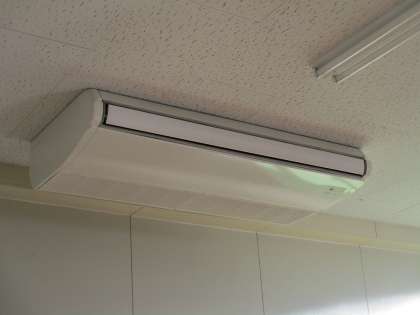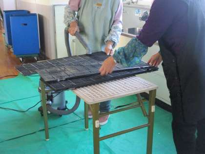 子どもたちの下校後に、エアコンのフィルター清掃です。