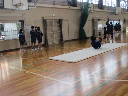 今、マット運動の学習をしています。その