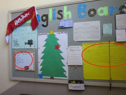 ALTの先生が用意してくれた英語ボードに