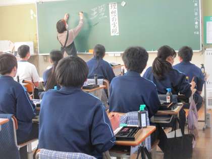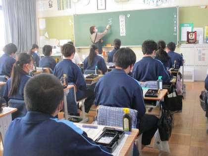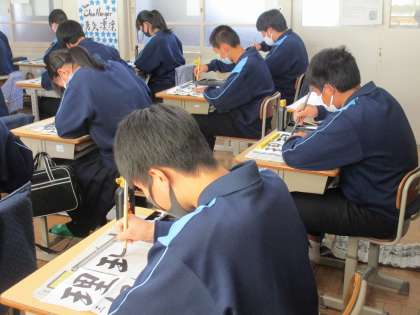 3年生 国語科の学習(書き初め)の様子です。 公開日 2022/12/14 更新日 2022/12/14 教育活動の様子 3年生は、「理想の実現」を書きます。 五文字の大きさのバランスをとるのが難しい ですね。そして、漢字と平仮名「の」が、 どういう大きさで書くのか、美しい比率を 考えて書いてください。