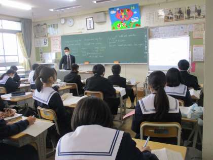 中学生の授業を真剣な表情で見ていま