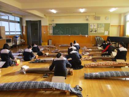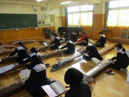2年生の音楽の学習では、日本の伝統楽器「琴」