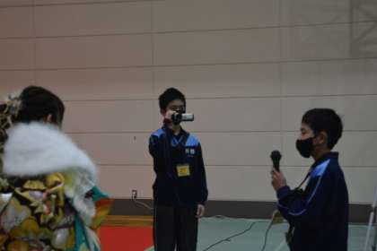 1月8日は井郷地区の「二十歳のつどい」がありました。 公開日 2023/01/10 更新日 2023/01/10 WE LOVE いさと 1月8日(日)は井郷地区「二十歳のつどい」が ありました。今年20歳となる学年は、第32回生 です。卒業当時の恩師の先生も成長した姿を見届け に参列していました。 「WE LOVE いさと」の精神をもって社会に大きく 貢献していってほしいです。 参加者へのインタビューをボランティアで井郷中生 が行っていました。(3枚目の写真)