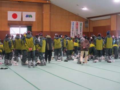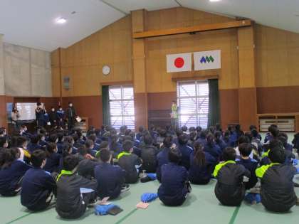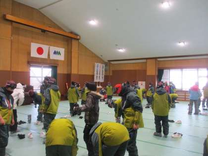 2年生 自然教室1日目 入所式 公開日 2023/02/11 更新日 2023/02/11 教育活動の様子 2月6日自然の家につき、入所式で 所員の方に挨拶をしました。 「今年は、雪が少ない」という言葉に また驚きです。十分多いです。多い時は 積雪4mだそうです。今年は2mもない。 へえー。あとで所員の方に聞くと、先日の 1月24日ごろからの寒気は、妙高より少し ずれていたそうです。 入所式後に、スキーウェアに着替えて スキー靴合わせをしました。