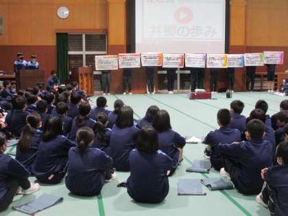2年生 自然教室2日目 立志式(2) 公開日 2023/02/13 更新日 2023/02/13 教育活動の様子 自然教室の2日目の夜に立志式を開きました。 映像で井郷の歩みを振り返った後で、自分たちの 歩んできた生活を振り返りました。実行委員の子ども たちが、しっかりと準備をしてきました。 学年のスローガンや目標も確認しました。