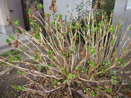 アジサイも芽?新葉?が出てきています。