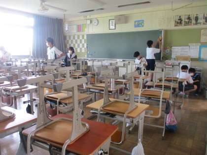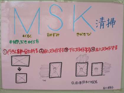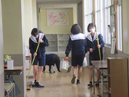 清掃をきびきびと行っています。 公開日 2023/04/28 更新日 2023/04/28 学校全体の様子 今年度から清掃の時間を15分から 10分に短縮しました。 毎日の生活の中で、あまり汚れない 使い方ができるのと、すばやく移動し きびきびと黙々と清掃活動ができるの で、10分で十分だと考えたからです。 1年生もMSK(もくもく、すいずみ きびきび)清掃ができています。