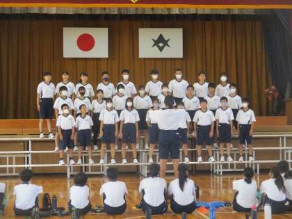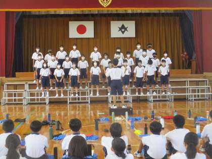 9月25日に中間発表で、1年生で合唱を 聞き合いました。