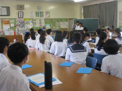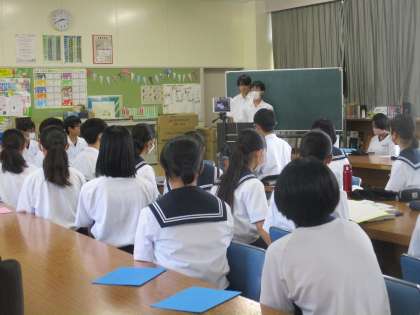 9月28日の生徒会役員選挙の様子 です。図書室からオンラインで教室に 放送しました。