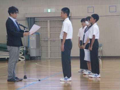 閉会行事では、学年主任から各学級に