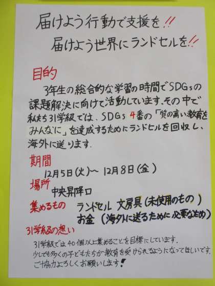 3年生 SDGsの学びを進めています。
