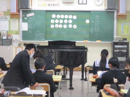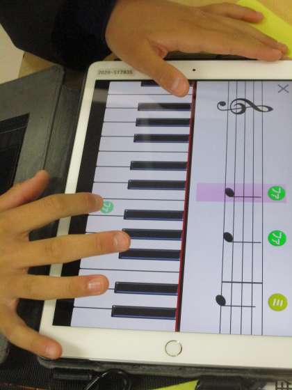 1年生の音楽の学習の様子です。 公開日 2023/12/15 更新日 2023/12/15 教育活動の様子 音楽でリコーダーの学習をしていました。 リコーダーの練習とあわせて、ピアノの演奏 も練習をしています。 なんと、学習用タブレットでの練習です。 鍵盤のタッチが違うとは思いますが、運指 の練習は、個別にそれぞれで進められます。