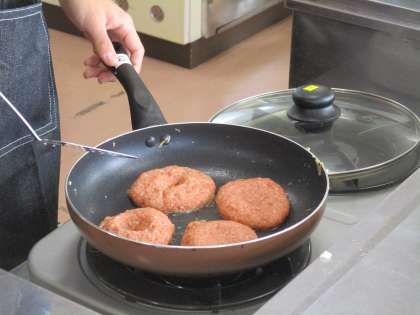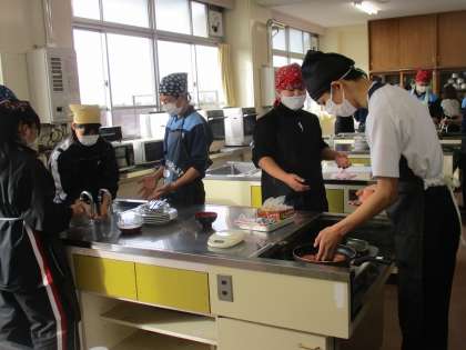 2年生の家庭科の学習の様子です。(2) 公開日 2024/01/22 更新日 2024/01/22 教育活動の様子 2年生は家庭科の学習で調理実習 をしています。ハンバーグを作ります。 学校で準備した材料で、手際よく 作っていきます。フライパンで焼いて おいしそうな匂いがしてきます。 前回は片づけ終わった後に調理室を見 ました。今回は作っている場面に間に合い ました。手際よく、進めていきます。