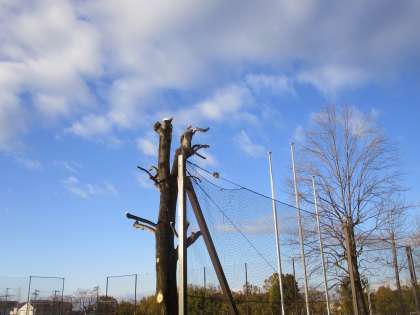 校舎に張り出しすぎてきたので、伐採して