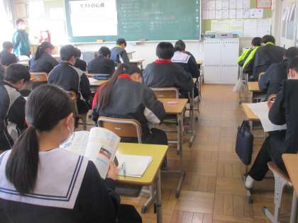 学年末テストをがんばりました。 公開日 2024/02/17 更新日 2024/02/17 学校全体の様子 2月14日〜16日が学年末テストでした。 3年生は、2日間で5教科で終わりました。 テスト前の最後の確認をしています。どの子 も集中して取り組んでいます。
