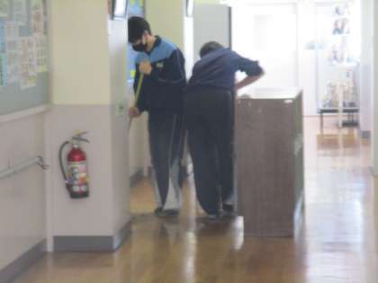 愛校活動の様子です。(3) 公開日 2024/02/17 更新日 2024/02/17 教育活動の様子 2月16日、いろいろな場所を ピカピカにしています。 高い場所は、教師が行っています。 いつもは動かさない物の裏側まで 1年に一回の大掃除の場所もありま す。3年間の感謝の思いが伝わって きます。