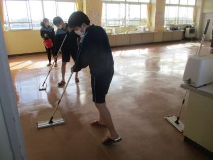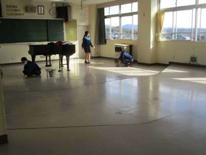 愛校活動の様子です。(5) 公開日 2024/02/17 更新日 2024/02/17 教育活動の様子 特別教室の床は、汚れを取り、ワックス がけもできました。ごしごしと汚れを力と 感謝の思いを込めてきれいにしていました。 そのほか、いろいろな場所を分担して 運動場の倉庫などもしっかりときれいに 整頓され、きれいになりました。 3年生のみなさん、本当にありがとう。