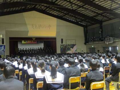 卒業を祝う会の様子です。(3) 公開日 2024/03/03 更新日 2024/03/03 教育活動の様子 学級紹介の演出や個性あふれる先輩 たちのよさや学級のパワーを思い返す 時間にもなりました。 2年生から思いを込めて「春愁」の 合唱を贈りました。体育館の上に写された スライドの演出も思いが詰まっていました。