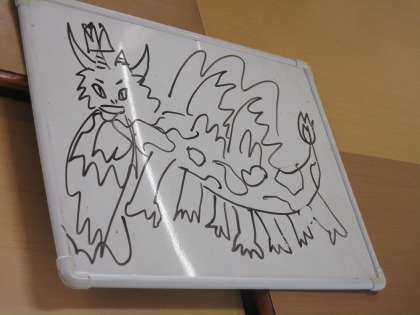 座席近くの小グループで、絵リレーを