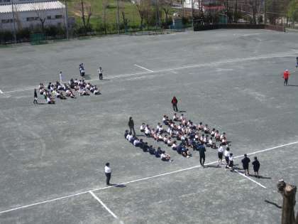 1年生が学年全体で体育の授業をしていました。 公開日 2024/04/12 更新日 2024/04/12 教育活動の様子 4月12日、1年生全員で学年体育を しちました。体育祭でも行う全員リレーの 練習でした。 50m走を計測して、各学級で走順など を考えていました。実際に走ってみると うまくバトンが渡せなかったり、走る人 がつながらなかったりすることが起きます。 でも、今日は初めての練習で、ちゃんと どの学級も、バトンがつながったそうです。 よかったです。見事です。