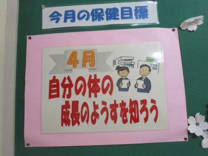 4月の保健目標は「自分の体の成長のようすを知ろう」です。